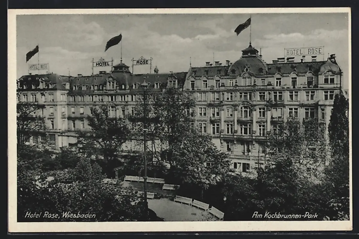 AK Wiesbaden, Hotel Rose, Am Kochbrunnen-Park,