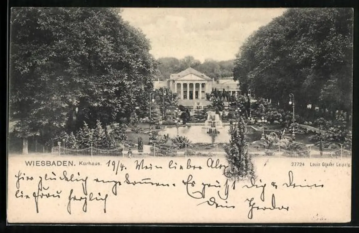 AK Wiesbaden, Kurhaus, Gartenanlage, Brunnen