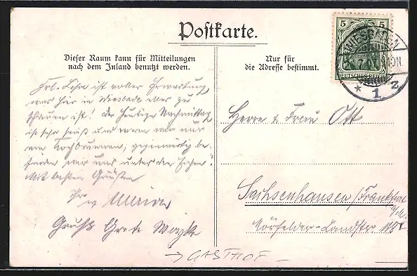 alte Ansichtskarte, gelaufen 1907, guter Zustand