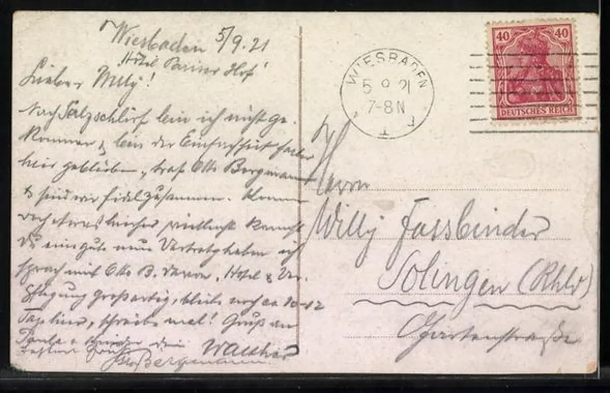 alte Ansichtskarte, gelaufen 1921, Eckknick unten links, guter Zustand