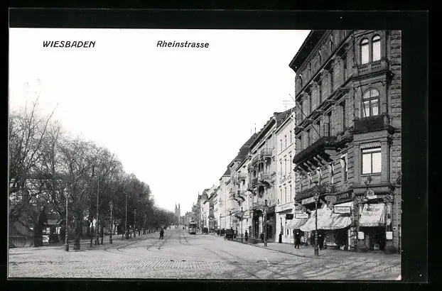 AK Wiesbaden, Strassenbahn in der Rheinstrasse