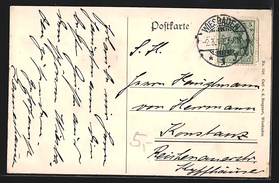alte Ansichtskarte, gelaufen 1910, Eckknick unten rechts, guter Zustand