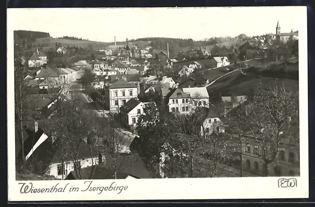 AK Wiesenthal im Isergebirge, Blick über die Dächer