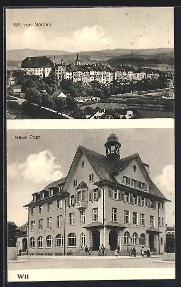 AK Wil, Neue Post und, Totalansicht von Norden