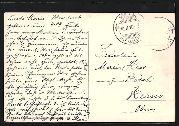 gelaufen 1910, Briefmarke entfernt, guter Zustand