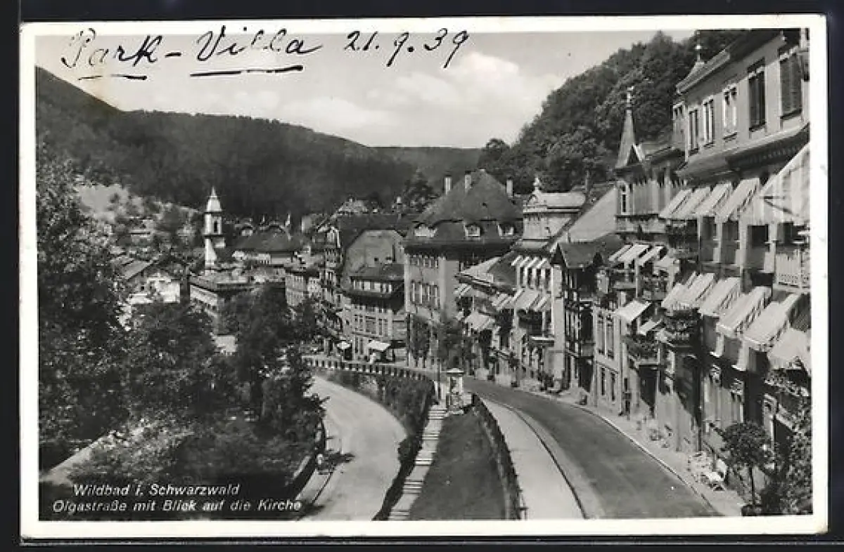 AK Wildbad i. Schwarzwald, Olgastrasse mit Blick auf die Kirche