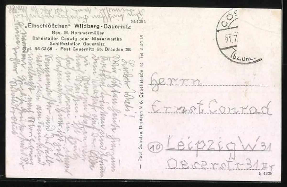 AK Wildberg-Gauernitz, Gasthof Elbschlösschen, Bes. M. Hammermüller