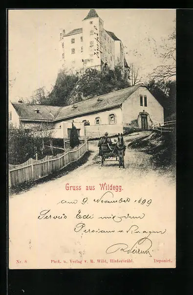AK Wildegg, Strassenpartie mit Pferdekutsche
