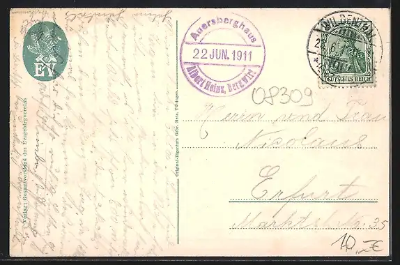 alte Ansichtskarte, gelaufen 1911, guter Zustand
