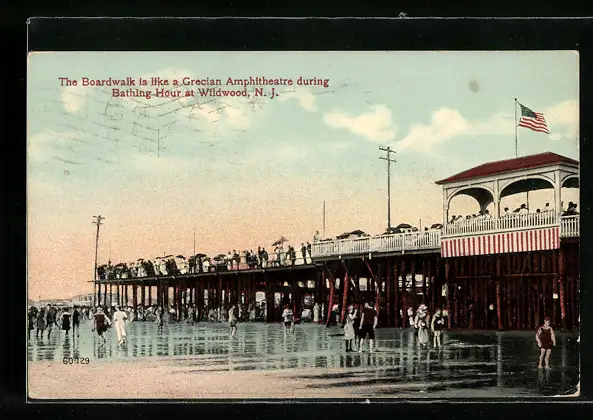 AK Wildwood, NJ, The Boardwalk is like a Grecian Amphitheatre during Bathing-Hour