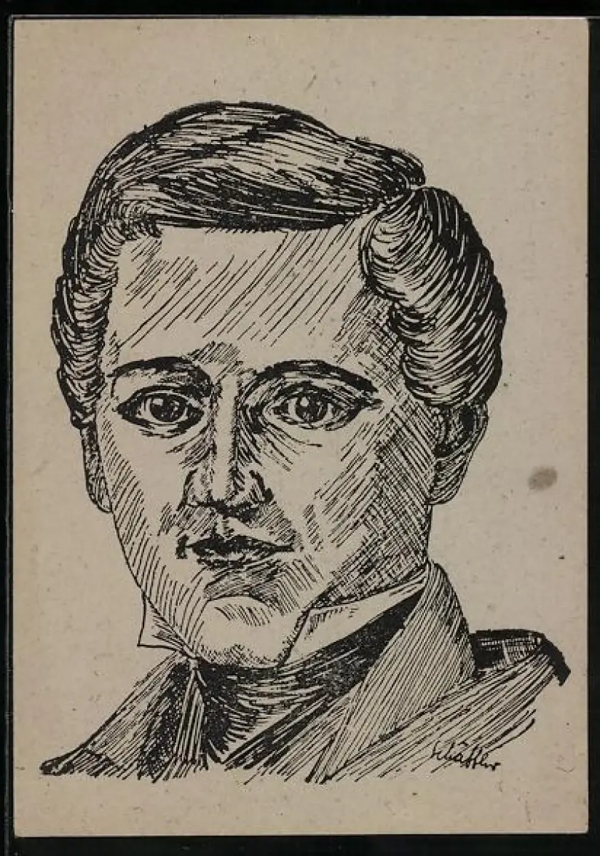 AK Wilhelm Hauff mit Scheitelfrisur im Anzug