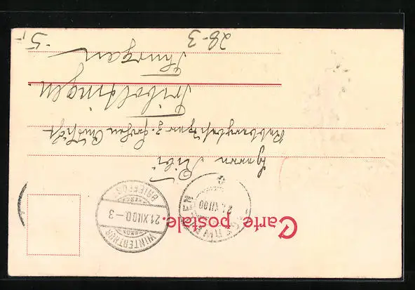 gelaufen 1900, Briefmarke entfernt, guter Zustand