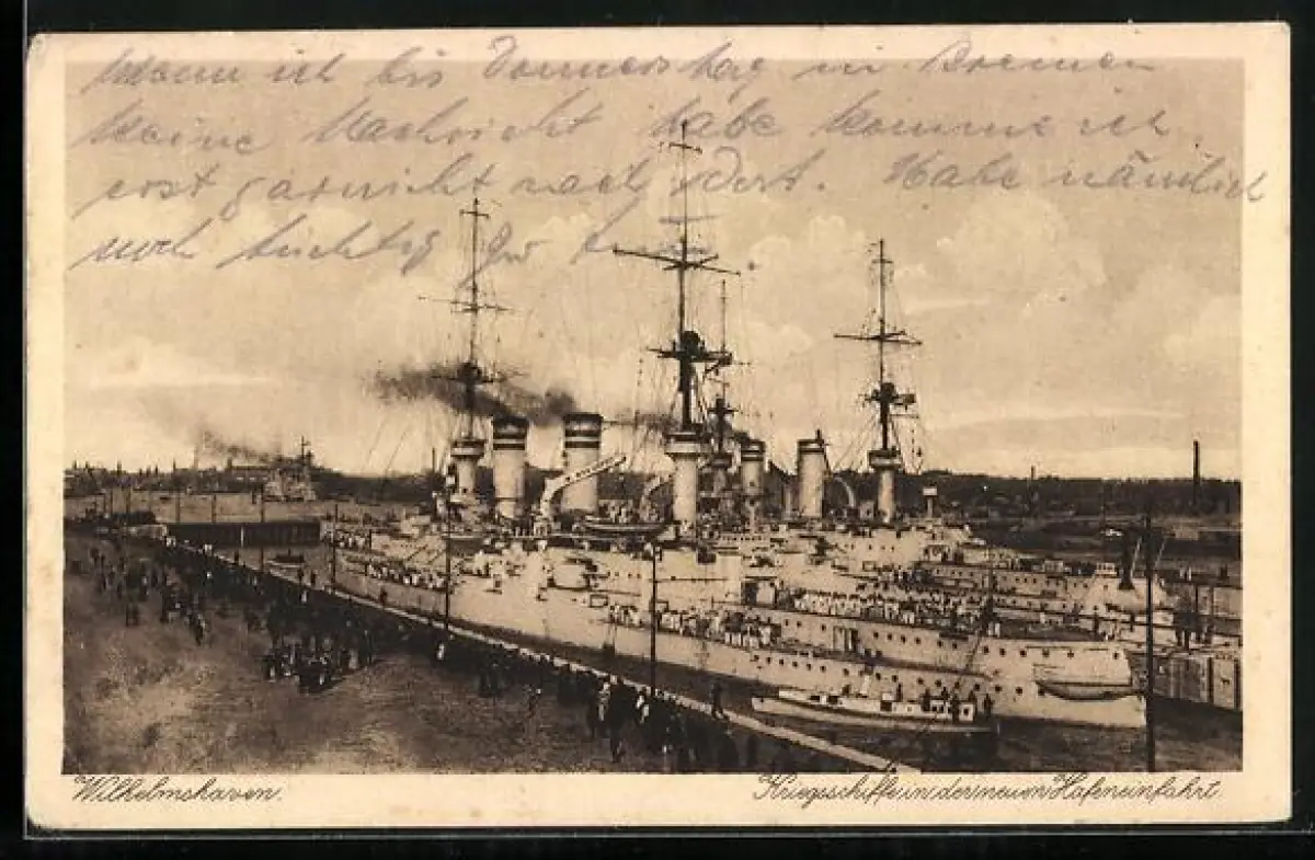 AK Wilhelmshaven, Kriegsschiffe in der neuen Hafeneinfahrt