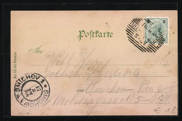 alte Ansichtskarte, gelaufen 1900, Bugspur oben re., guter Zustand