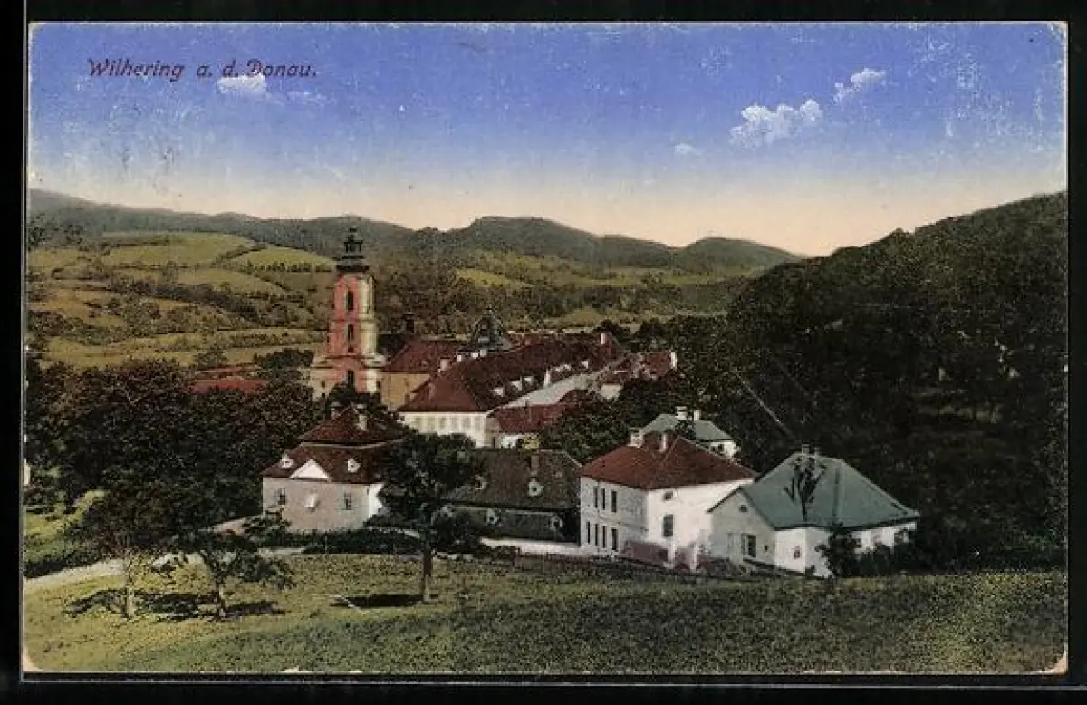 AK Wilhering a. d. Donau, Panorama mit Kirche und Ortsansicht