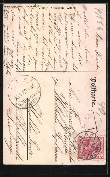 alte Ansichtskarte, gelaufen 1909, Eckknick li. unten, guter Zustand