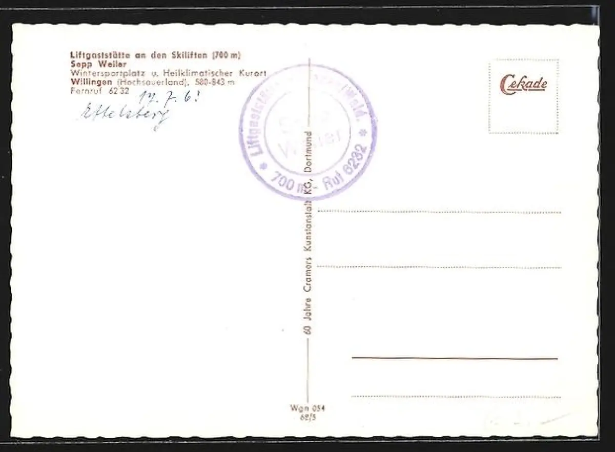 AK Willingen /Hochsauerland, Liftgaststätte an den Skiliften, Inh. Sepp Weiler