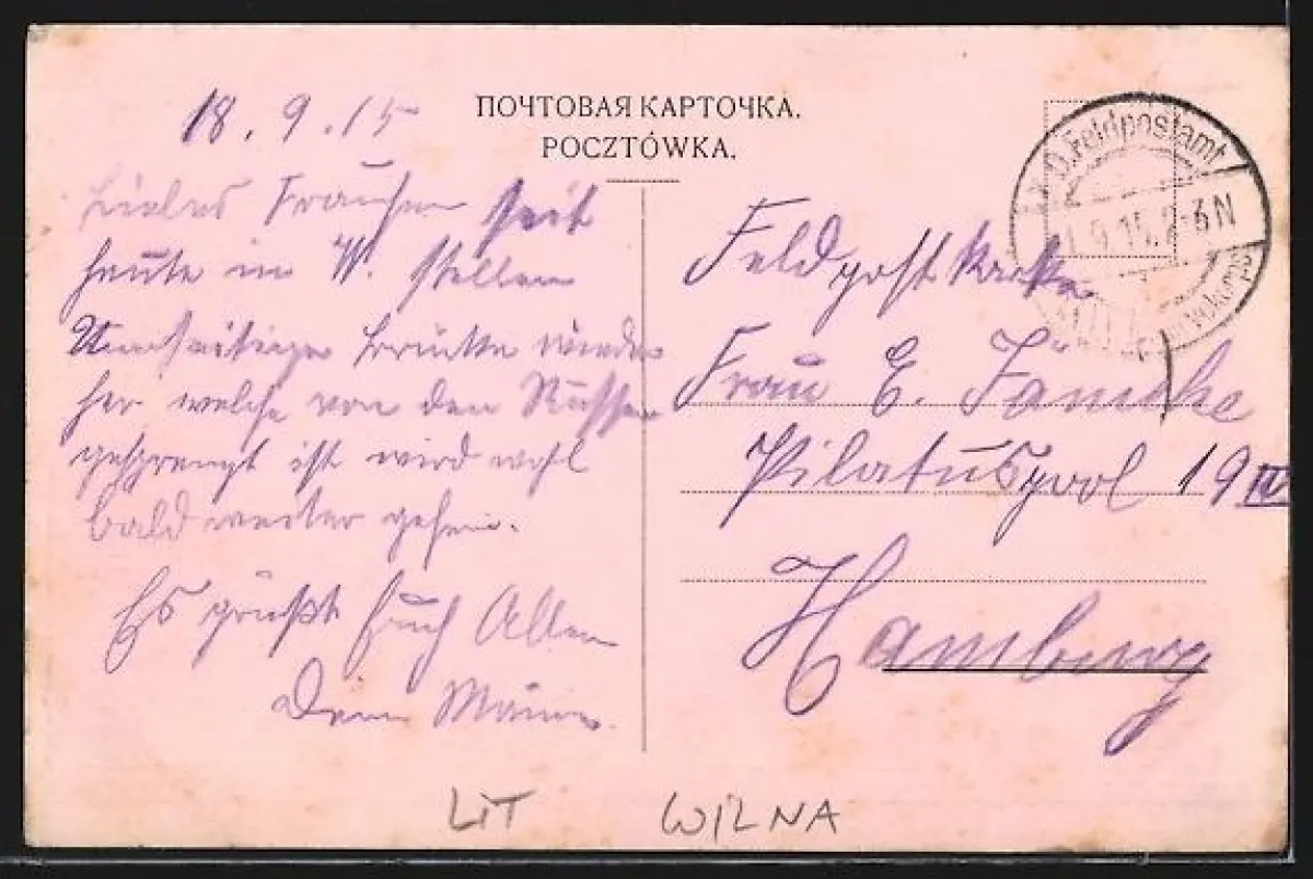 alte Ansichtskarte, gelaufen 1915 als Feldpost, Eckknick links unten und rechts unten, guter Zustand