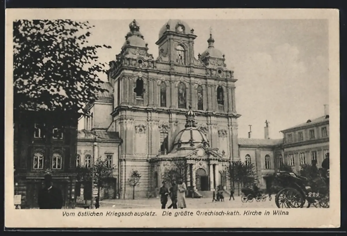 AK Wilna, Griech.-kath. Kirche mit Passanten