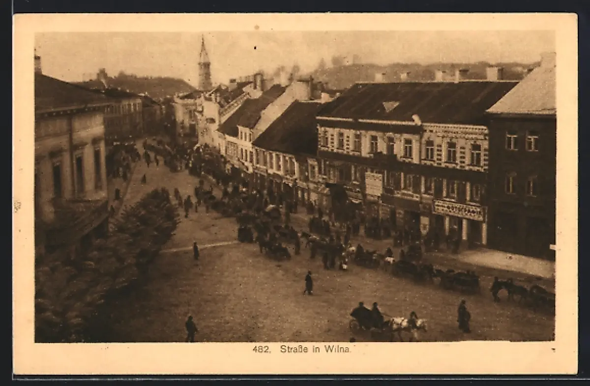 AK Wilna, Strassenszene mit Geschäften und Leute