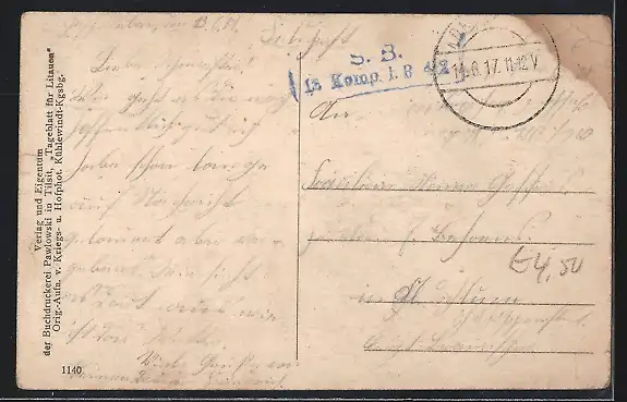 alte Ansichtskarte, gelaufen 1917, Abriebspuren unten Mitte u. re. oben, guter Zustand