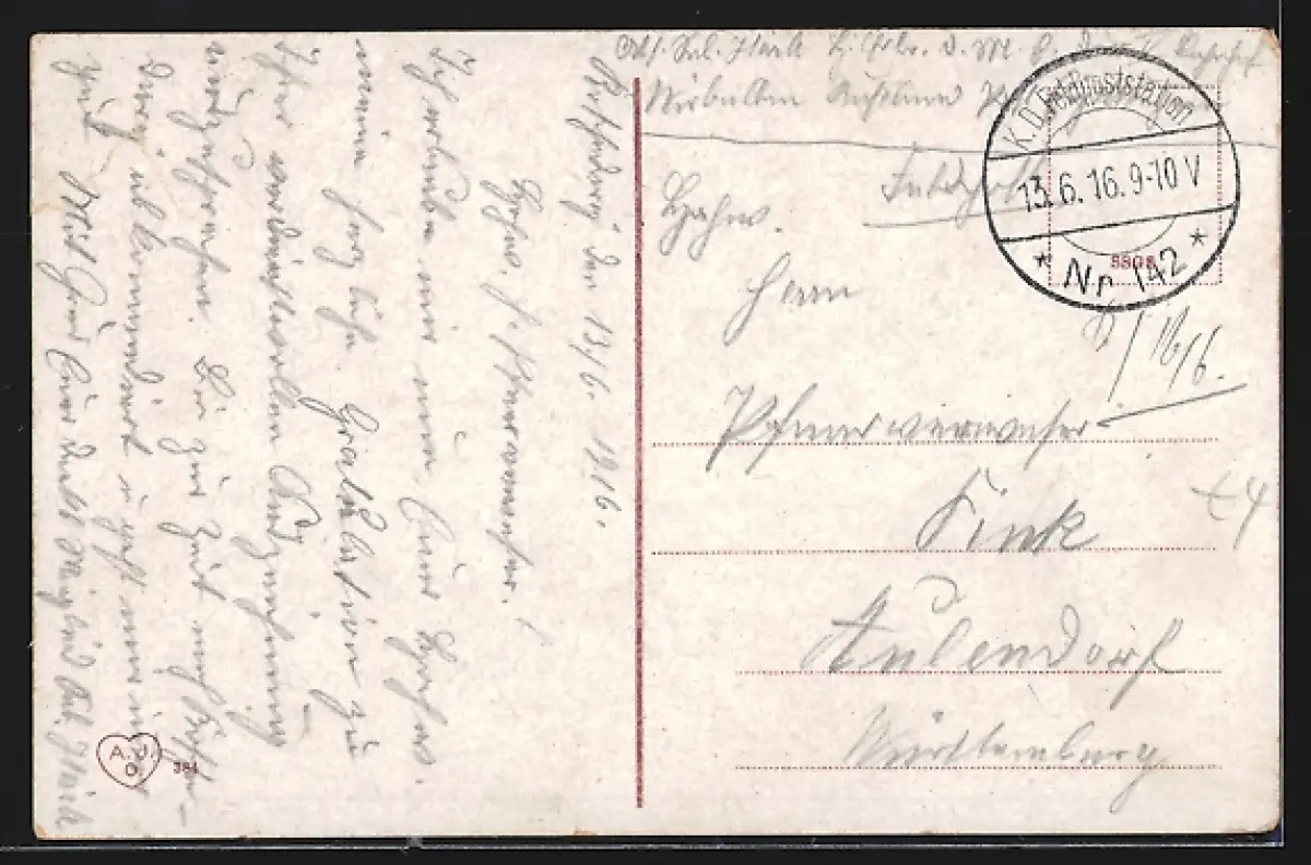 alte Ansichtskarte, gelaufen 1916, Eckknick li. oben, Einriss re. oben, guter Zustand