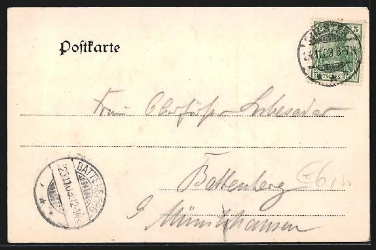 alte Ansichtskarte, gelaufen 1903, Ecken bestoßen, guter Zustand