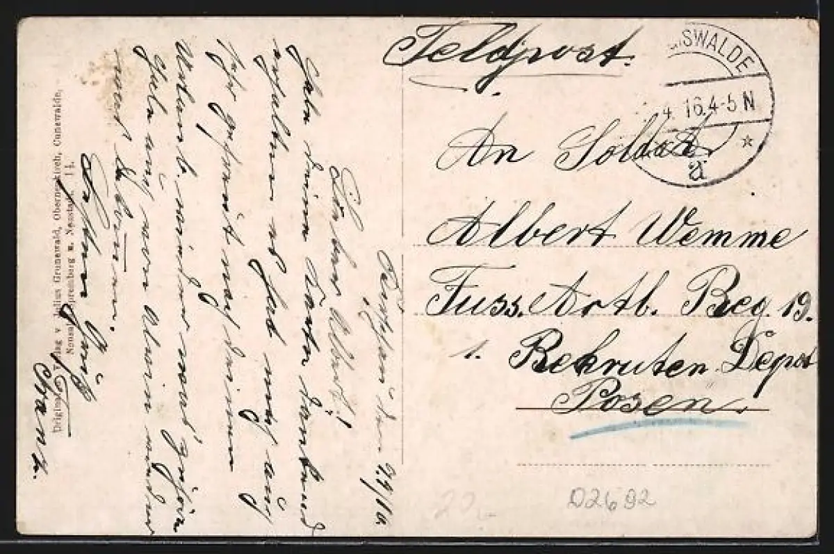 alte Ansichtskarte, gelaufen 1916, Abriebspur oben li. u. unten re., Eckknick oben li., guter Zustand