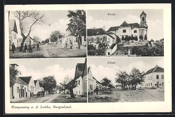 AK Wimpassing a. d. Leitha, Kirche, Schule, Strassenpartie