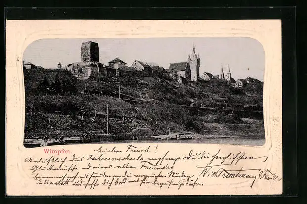 AK Wimpfen, Ortsansicht mit Flusspartie