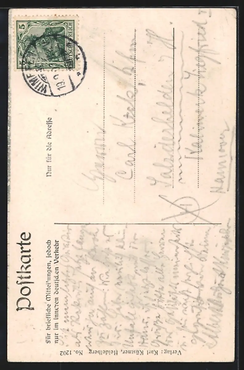 alte Ansichtskarte, gelaufen 1907, Eckknick li. oben, guter Zustand