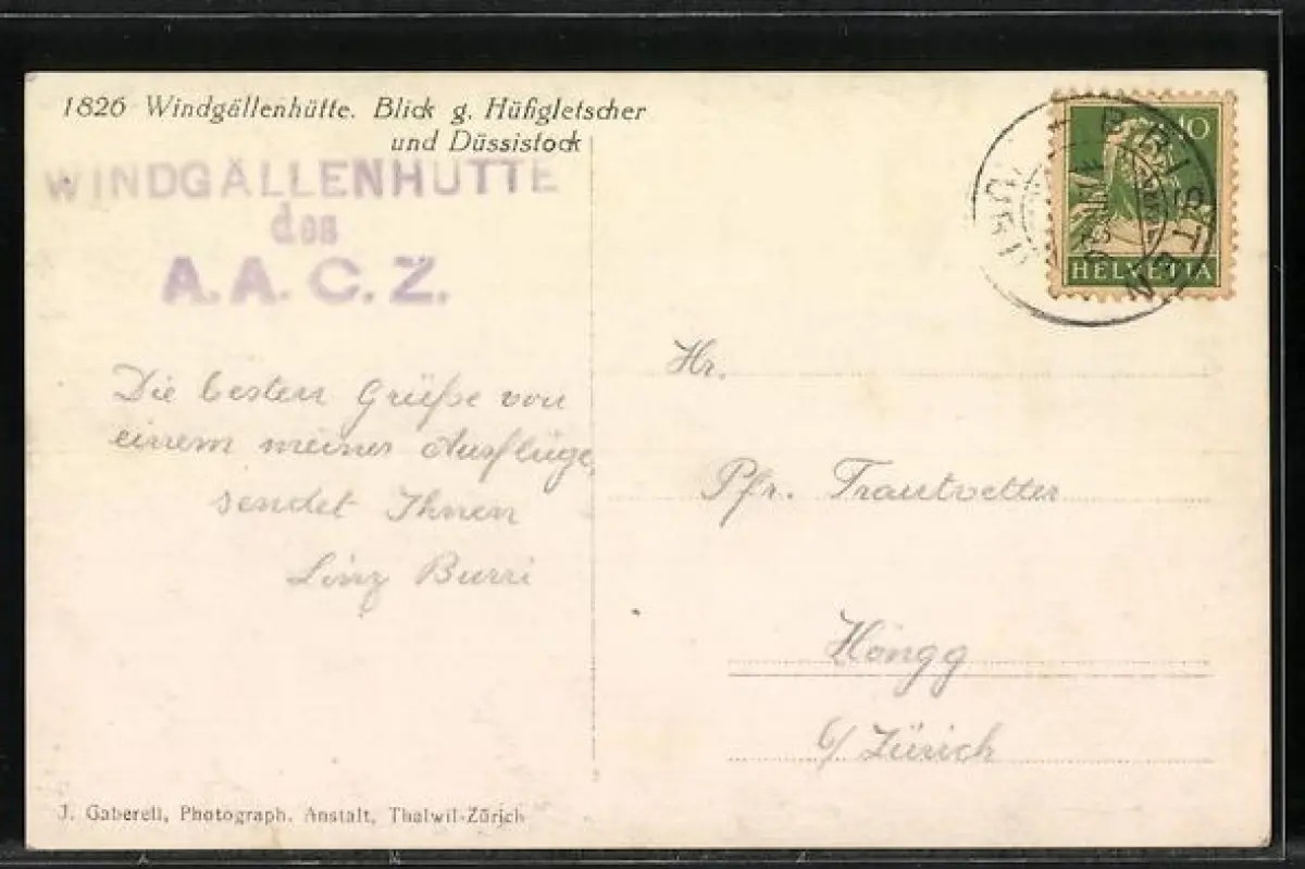 AK Windgällenhütte, Berghütte mit Blick auf Hüfligletscher und Düssistock