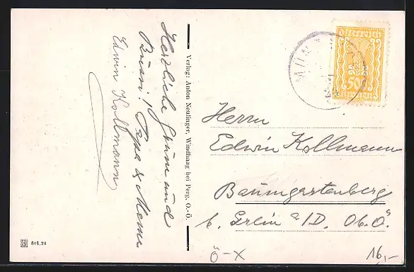 alte Ansichtskarte, gelaufen 1924, guter Zustand