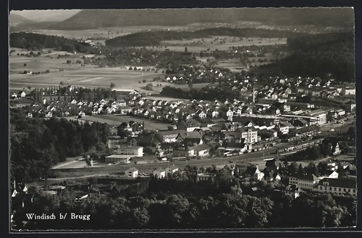 AK Windisch bei Brugg, Ortsansicht aus der Vogelschau