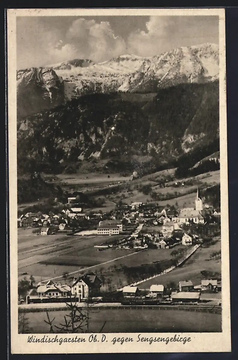 AK Windischgarsten, Bahnhof mit Ortsansicht gegen Sengsengebirge