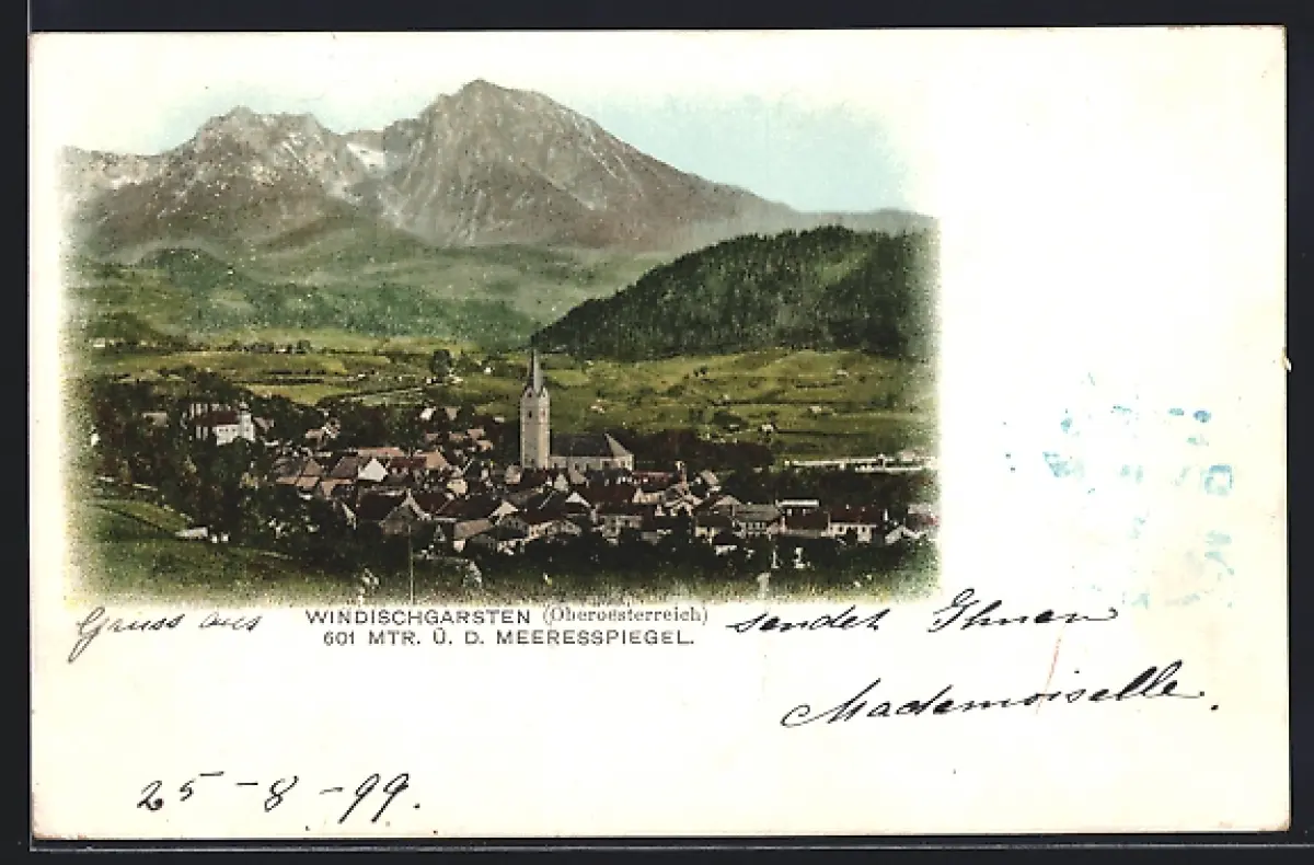 AK Windischgarsten, Ortsansicht gegen Gebirgspanorama