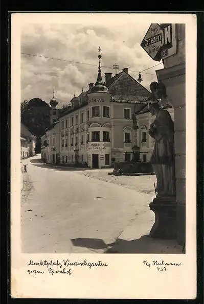 AK Windischgarsten, Strassenpartie am Marktplatz mit Rathaus und Pfarrhof