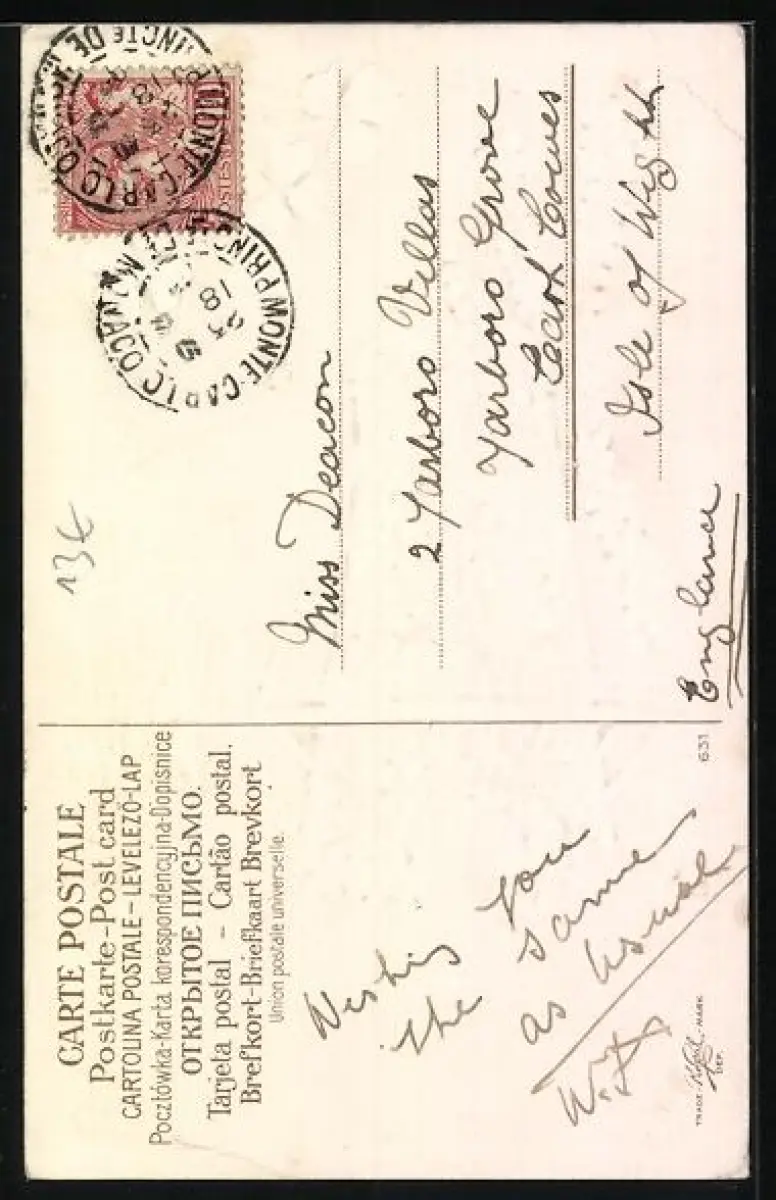 alte Ansichtskarte, gelaufen, Stempelspur, guter Zustand