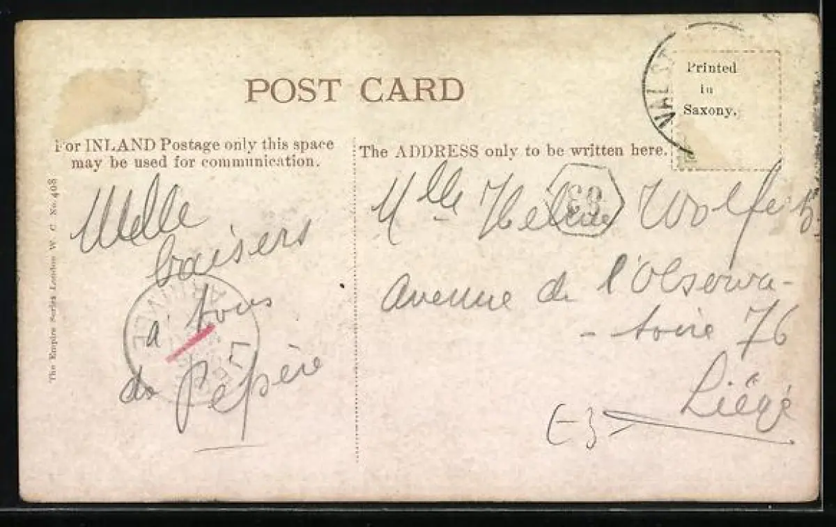 alte Ansichtskarte, gelaufen, Briefmarke entfernt, guter Zustand