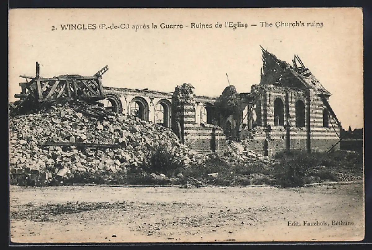 AK Wingles, Ruines de l`Eglise après la Guerre