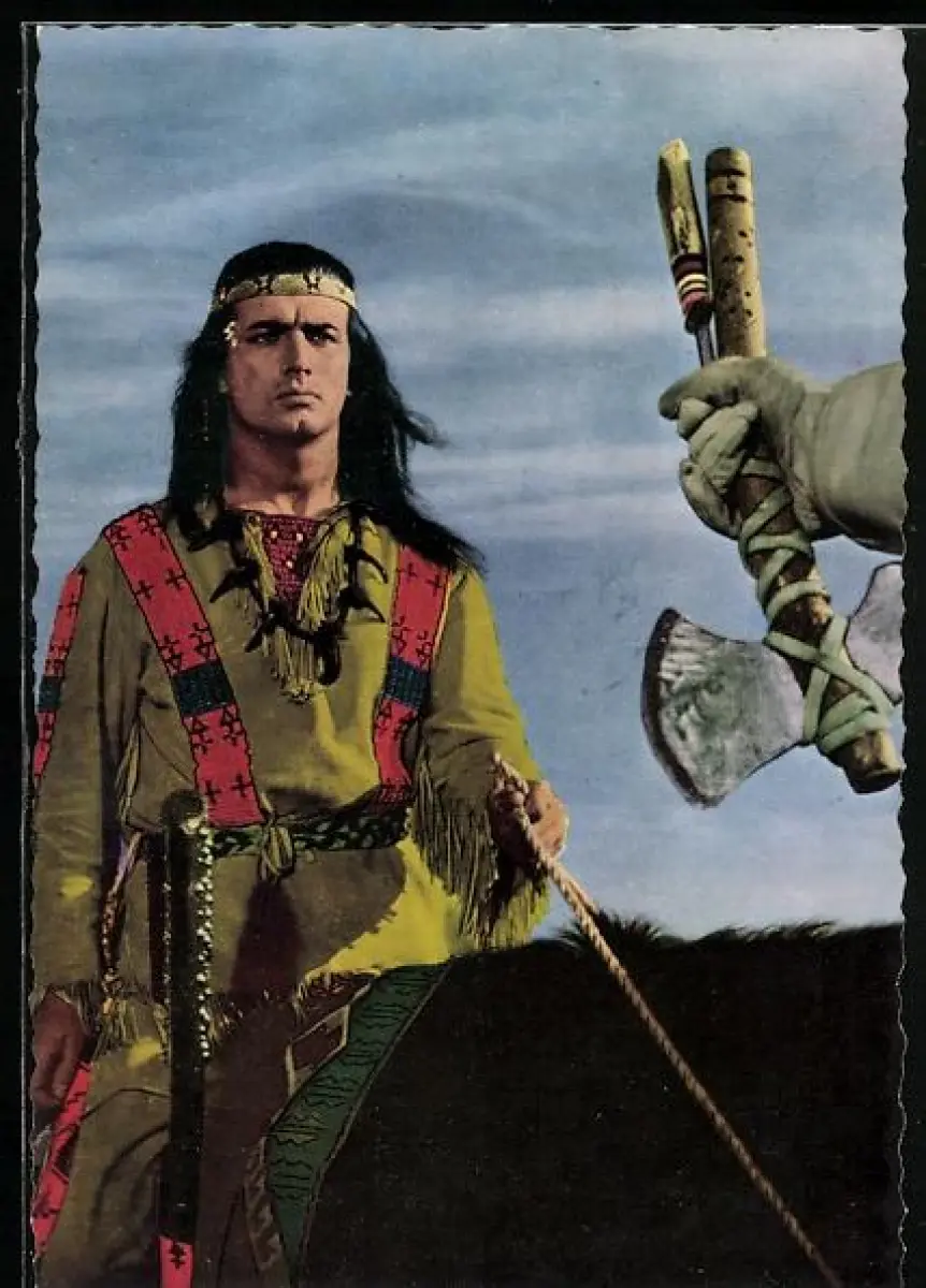 AK Winnetou, dem Häuptling der Apachen wird das Kriegsbeil ausgehändigt