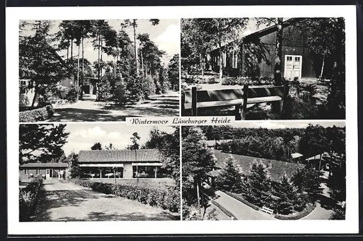AK Wintermoor /Lüneburger Heide, Partie mit Häusern und Bäumen