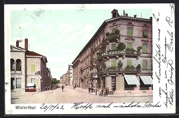 AK Winterthur, Hotel Walhalla und Blick in die Museumstrasse