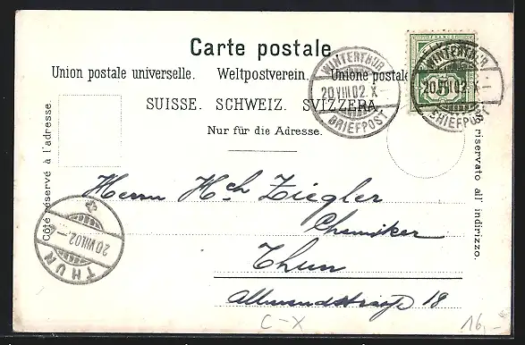 alte Ansichtskarte, gelaufen 1902, Stempelspur, Eckknick unten re., guter Zustand