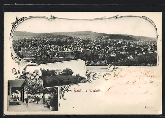 AK Winterthur, Restaurant Bäumli, Ortsansicht aus der Vogelschau