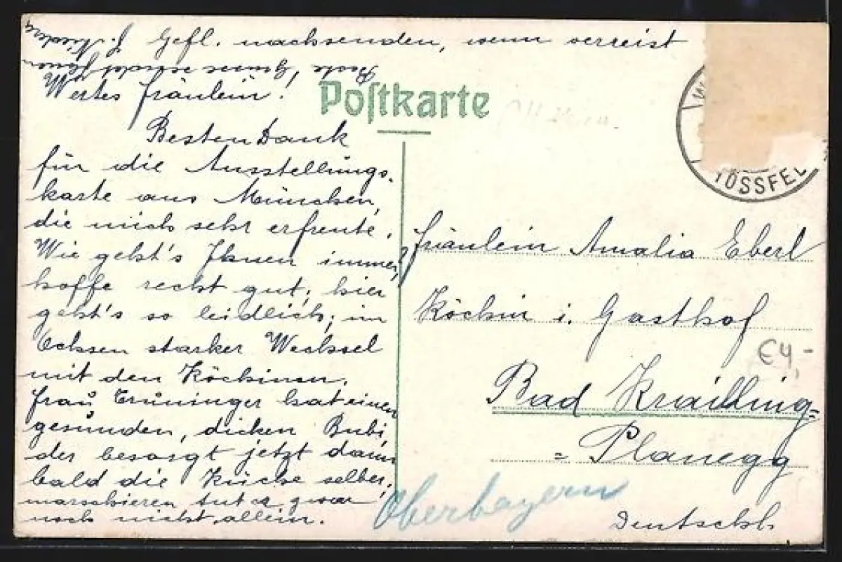 alte Ansichtskarte, gelaufen, Briefmarke entfernt, rückseitig Oberflächenschaden, guter Zustand