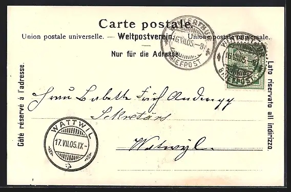 alte Ansichtskarte, gelaufen 1905, Stempelspur, guter Zustand
