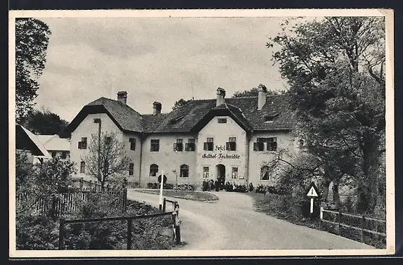 AK Winzendorf a. d. Schneebergbahn, Hotel Gasthof Teichmühle mit Strassenpartie