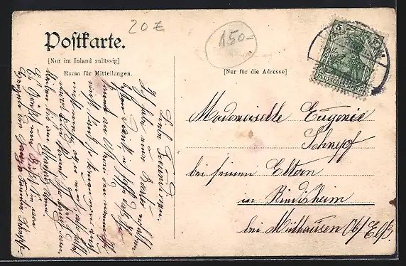 alte Ansichtskarte, gelaufen 1907, Eckknick re. oben, Abriebspur li. oben, guter Zustand