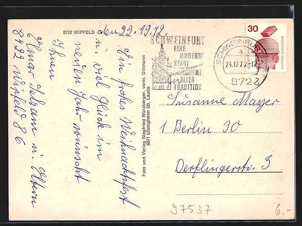 alte Ansichtskarte, gelaufen 1972, guter Zustand